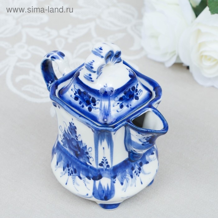 Молочник с крышкой "Ларец", гжель, фарфор, 14х14 см