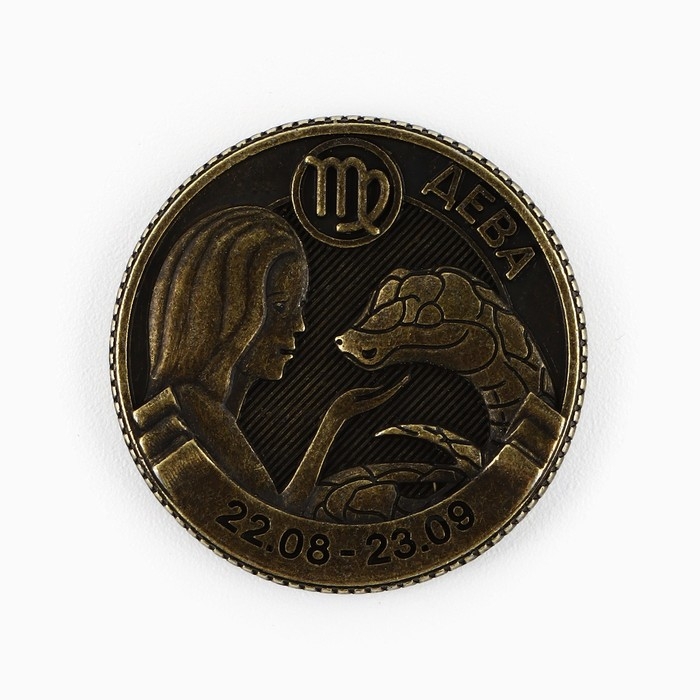 Монета гороскоп 2025 новогодняя «Дева» на Новый год, латунь, диам. 2, 5 см