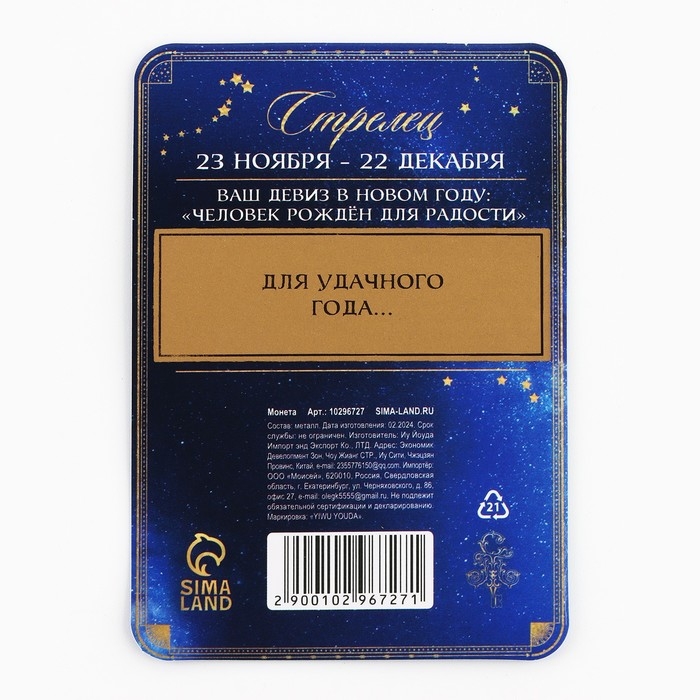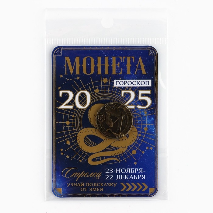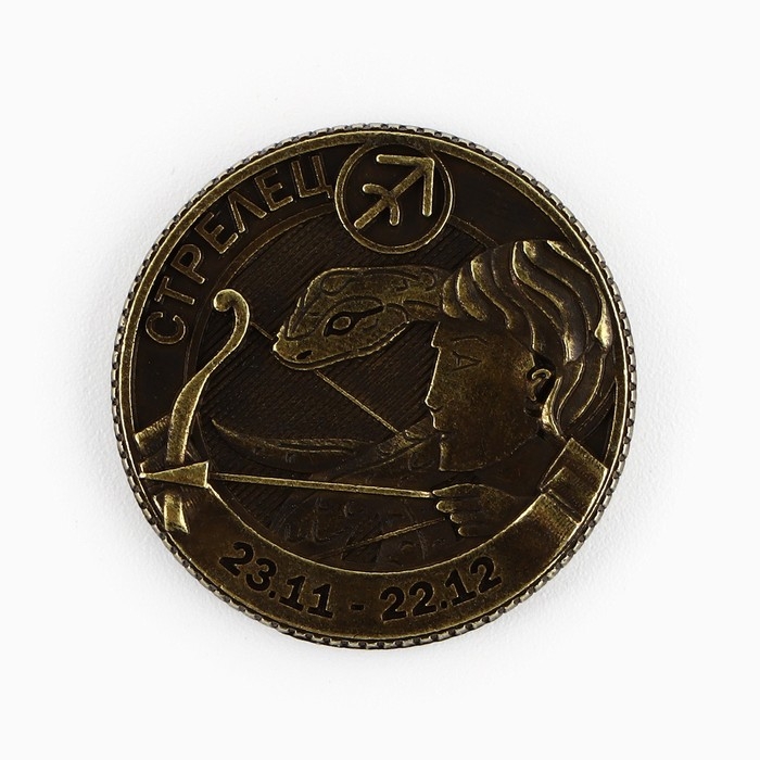 Монета гороскоп 2025 новогодняя «Стрелец» на Новый год, латунь, диам. 2, 5 см