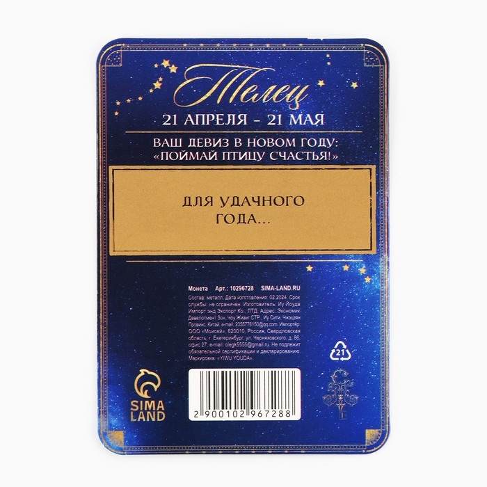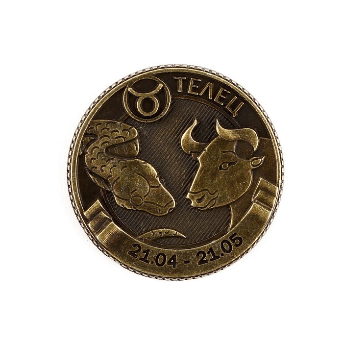 Монета новогодняя гороскоп, амулет 2025 «Новый год: Телец», латунь, диам. 2, 5 см