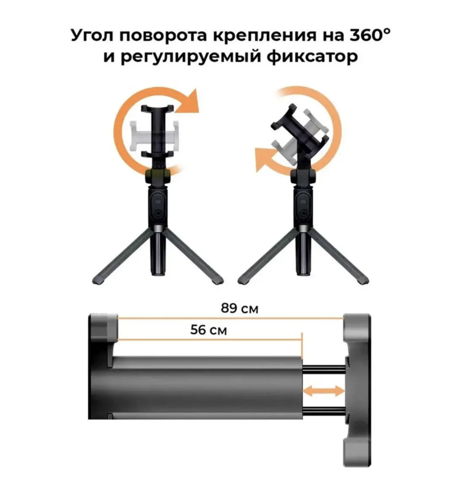 Монопод-трипод,селфи палка Xiaomi это функциональный прибор в котором совмещены сразу несколько устройств, монопод селфи палка и тренога. Поворот крепления 360 градусов, диапазон регулировки держателя смартфона 56-89 мм. Bluetooth 3.0. Ручка монопода способна разделяться на три лепестка, превращая его в устойчивый трёхногий штатив. Такая конструкция позволяет установить смартфон на стол или любую другую ровную поверхность и проводить видеоконференции, связываться по скайпу, а также делать фотографии. Ножки покрыты нескользящим на гладких поверхностях материалом. Селки палка Xiaomi заменит Вам обычный штатив. Ручка монопода выполнена из нескользящего материала. Это позволяет всегда надежно удерживать монопод в руке не боясь выронить его. Раздвижная часть монопода сделана из прочных алюминиевых трубок, которые обеспечивают прекрасную прочность даже при сильных перегрузках.