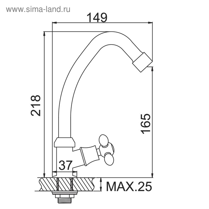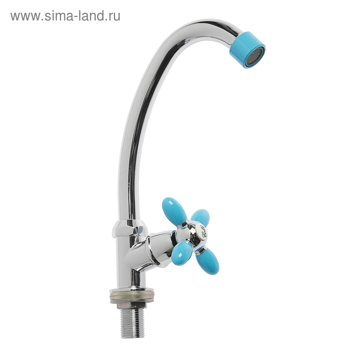 Кран на одну воду ZEIN Z2019, круглая ручка, пластик, высокий R-образный излив, белый