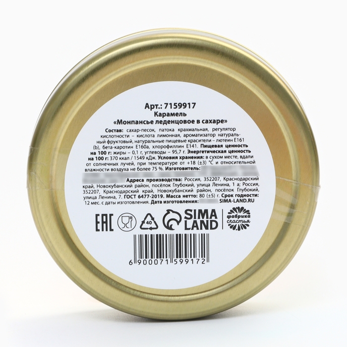 Состав: сахар-песок, патока крахмальная, регулятор кислотности –кислота лимонная, ароматизатор натуральный фруктовый,натуральные пищевые красители – лютеин Е161(b), бета-каротин Е160a, хлорофиллин Е141.