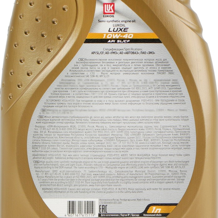 Моторное масло Лукойл Люкс 10W-40, API SL/CF, полусинтетическое, 1 л 32524