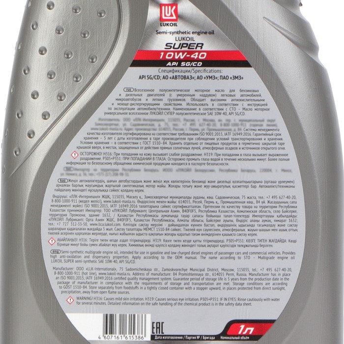 Моторное масло Лукойл Супер 10W-40, API SG/CD, полусинтетическое, 1 л 19191