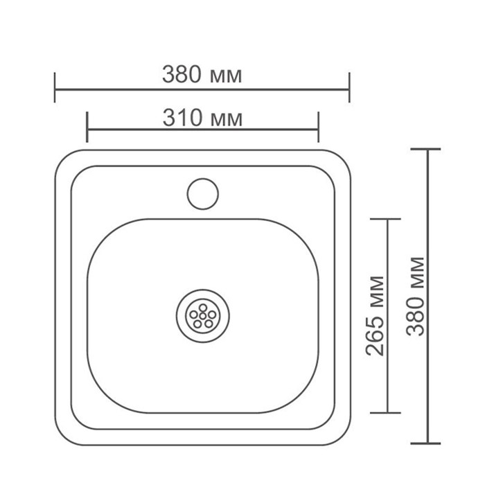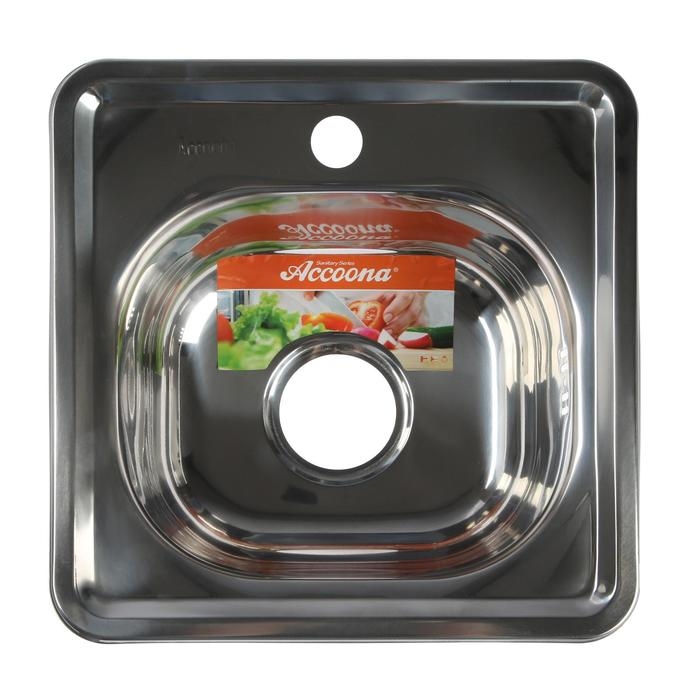 Мойка кухонная Accoona AB3838, врезная, толщина 0.6 мм, 380х380х165 мм, глянец
