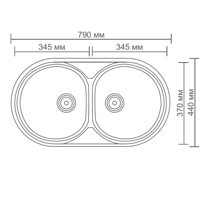 Мойка кухонная Accoona AB4479B, врезная, двойная, толщина 0.6 мм, 790х440х165 мм, глянец