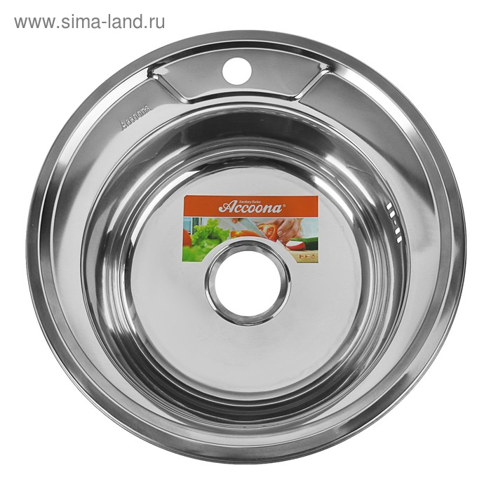 Мойка кухонная Accoona AB4949, врезная, круглая, толщина 0.6 мм, 490х165 мм, глянец