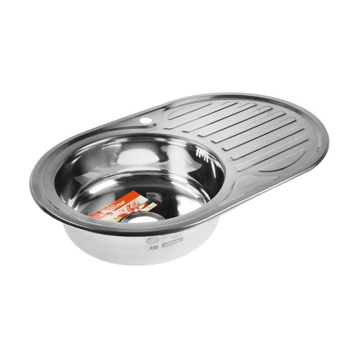 Мойка кухонная "Владикс", накладная, без сифона, 80х50 см, правая, нержавеющая сталь 0.4 мм