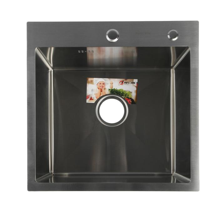 Мойка кухонная AFLORN AF95050, врезная, S=3,0 и 0,8 мм, 50х50х20 см, сифон, сатин