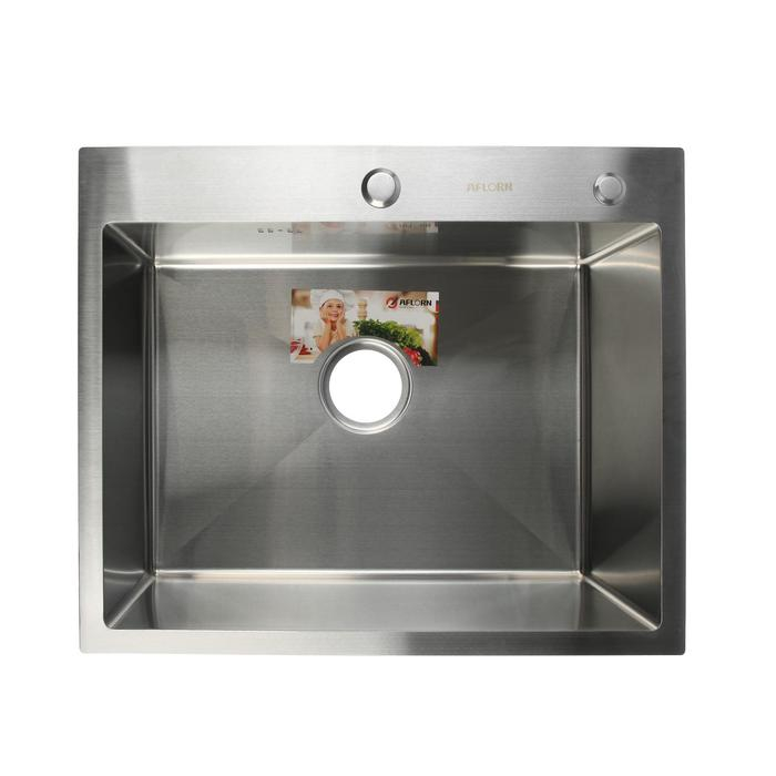 Мойка кухонная AFLORN AF96050, врезная, S=3,0 и 0,8 мм, 60х50х22 см, сифон, сатин