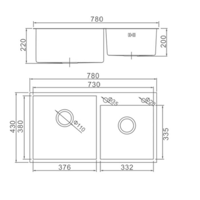 Присутствует отверстие под перелив, а также в каждой из двух чаш – слив. Можно установить смеситель и кран от фильтра для питьевой воды на чаше.