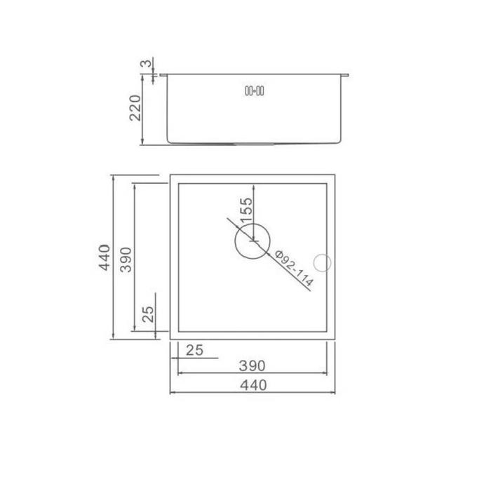 Мойка кухонная GERHANS K34444, врезная, 440 х 440 х 220 мм, толщина 1,0 мм, с сифоном