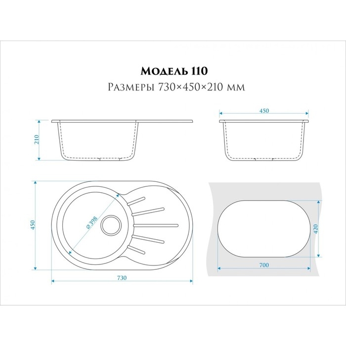 Мойка кухонная из камня ZETT lab. 110/Q7, 730x450x210 мм, матовая, цвет хлопок