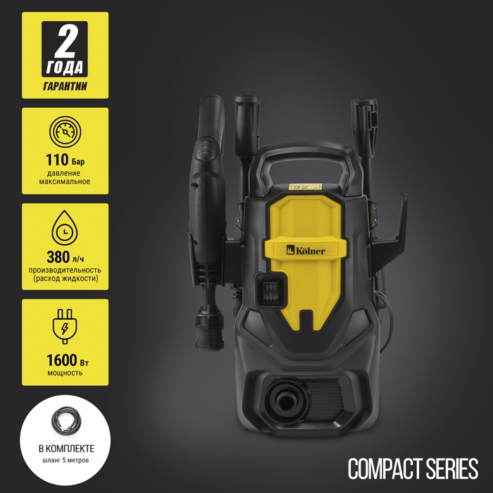 Мойка высокого давления Kolner K110, 110/70 Бар, 1600 Вт, 380 л/ч, метал.помпа, шланг 5 м