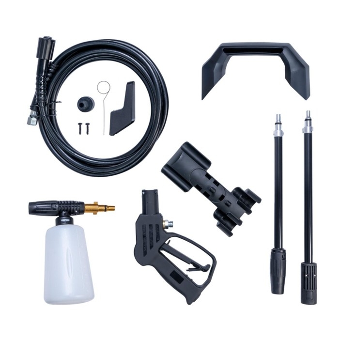 Ключевые особенности, такие как функция самовсасывания, гарантируют стабильный напор даже при минимальном входном давлении воды, а инновационная система Auto Stop экономит энергию, автоматически останавливая мотор при отпускании спусковой кнопки. Увеличенная длина шланга в 5 метров позволяет удобно охватывать большие радиусы, а различные насадки и регулировка распылителя дарят возможность адаптировать мойку под любые задачи.