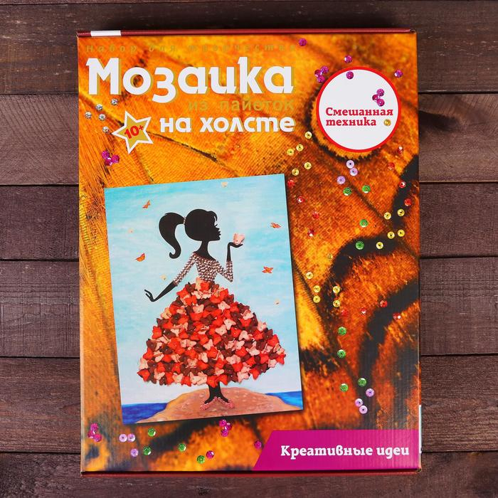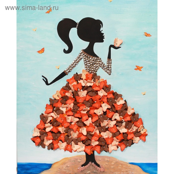 Мозаика из пайеток на холсте «Девочка с бабочками»