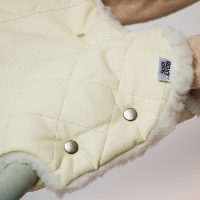 Муфта для коляски Elegante от ROXY-KIDS из экокожи является незаменимым и универсальным помощником во время длительных прогулок с малышом. Сдержанный цвет отлично подойдет к коляске любой расцветки. Муфта легко крепится к ручкам практически любых колясок при помощи кнопок и липучки. Практичный внешний материал экокожа легко очищается от загрязнений влажной губкой или тканью. Внутренний материал это мягкий искусственный мех с добавлением 20% натуральной овчины. Мех не вызывает раздражения на коже и хорошо удерживает тепло. Сохранению тепла также способствует то, что муфта застегивается внахлест, поэтому ваши руки будут защищены от ветра. Муфта идеально подойдет на демисезонный период для температур до -10 градусов. Кроме того, все муфты раскладываются в цельное полотно, поэтому их можно использоваться как дополнительное одеяльце для малыша или положить на лавочку, чтобы было комфортно сидеть.