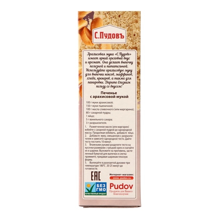 Арахисовая мука «С. Пудовъ» щедро передаёт готовым блюдам свой насыщенный вкус и аромат.