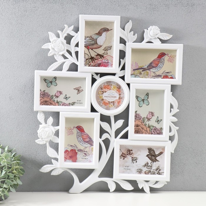 Мультирамка на 7 фото (10х15/6 шт, 10х10/1 шт) пластик, цв. белый