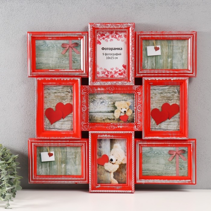 Мультирамка PLATINUM коллаж на 9 фото 10х15 см, красный с серебром