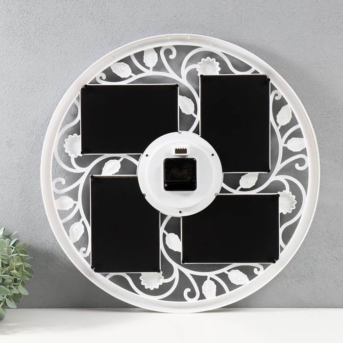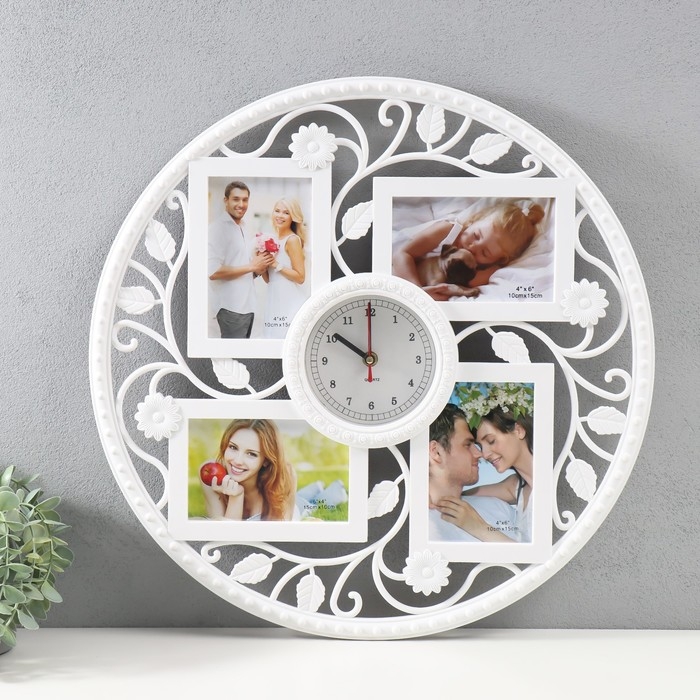Мультирамка с часами 4 фото 10х15 см, пластик, цв. белый