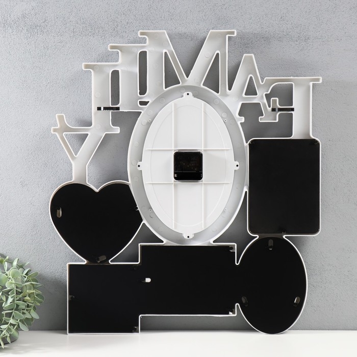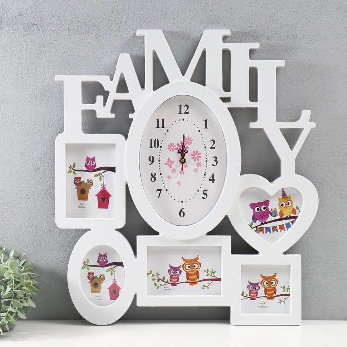 Мультирамка с часами "FAMILY" пластик, 5 фото (10х15/4шт, 10х10/1 шт) цв. белый