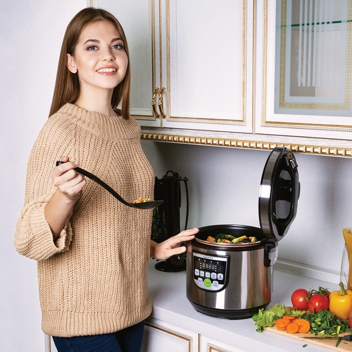 Мультиварка Galaxy GL 2643, 900 Вт, 5 л, 10 программ, антипригарное покрытие, серебристая