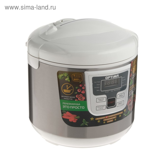 Мультиварка OPTIMA MC-5101, 900 Вт, 5 л, 11 программ, серебристая/белая