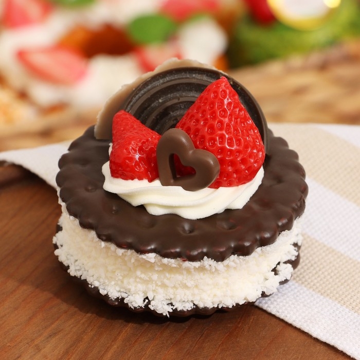 Муляж - магнит "Крекер шоколадный с кокосом" 7х7х6см