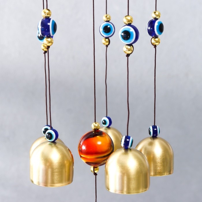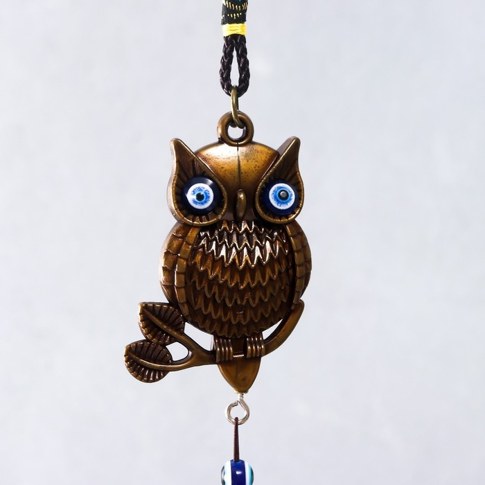 Музыка ветра металл "Филин на ветке" от сглаза 5 колокольчиков 44х8х8 см