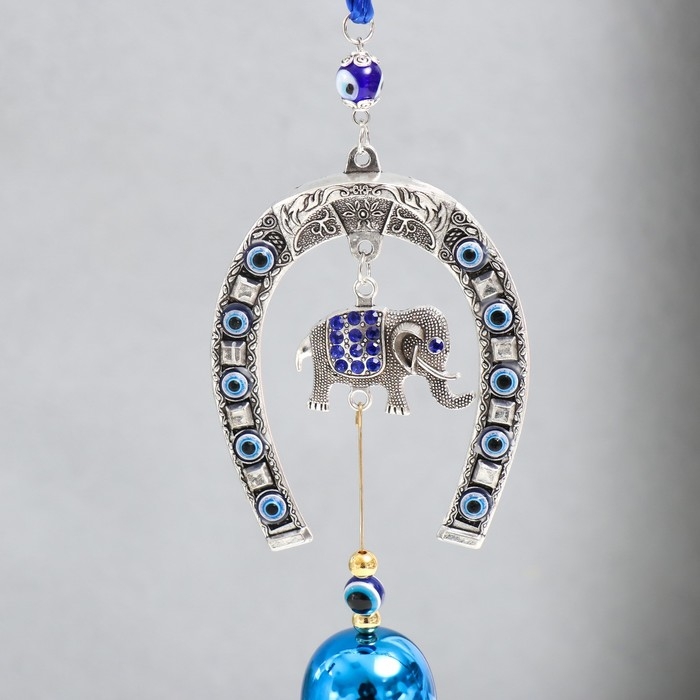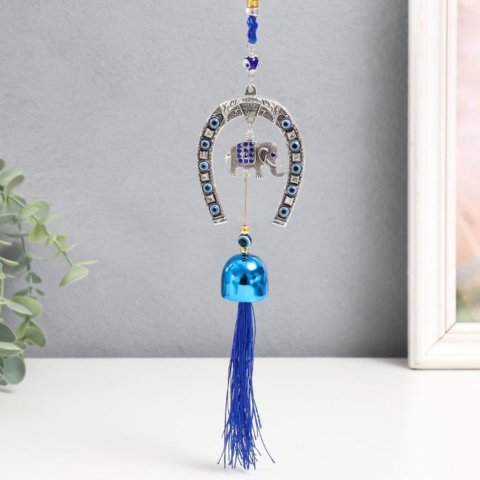 Музыка ветра металл "Слон и подкова" от сглаза с кисточкой 1 колокольчик 20 см