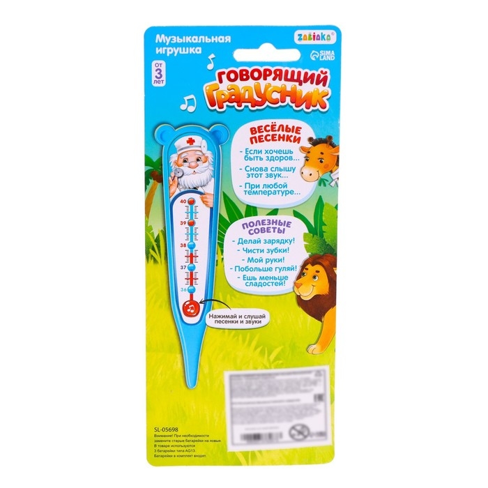Музыкальная игрушка «Говорящий градусник» способствует развитию у ребёнка логического мышления, слухового восприятия и воображения.