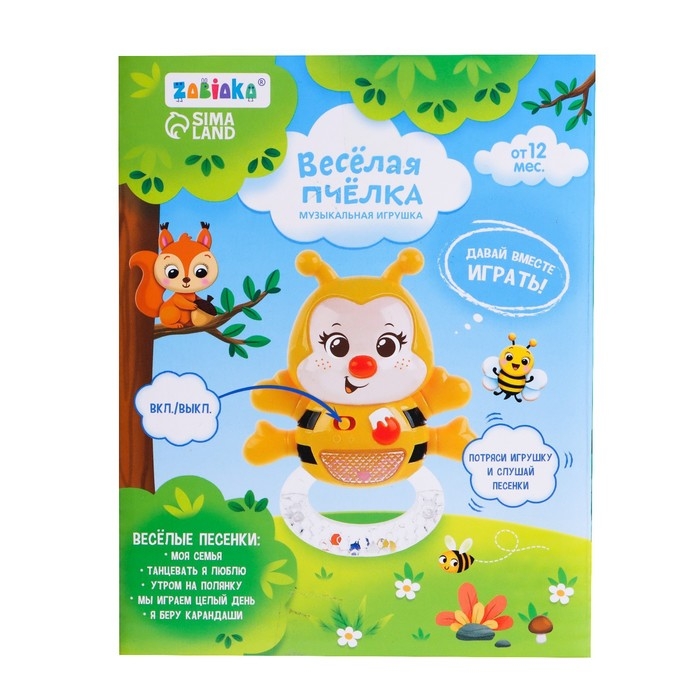 Музыкальная игрушка «Весёлая пчёлка» — это развлечение 2 в 1. Ей можно играть как погремушкой или слушать песенки.