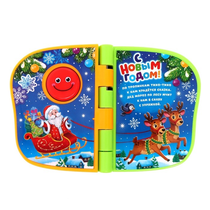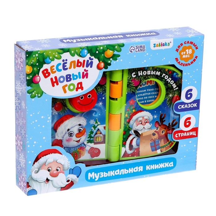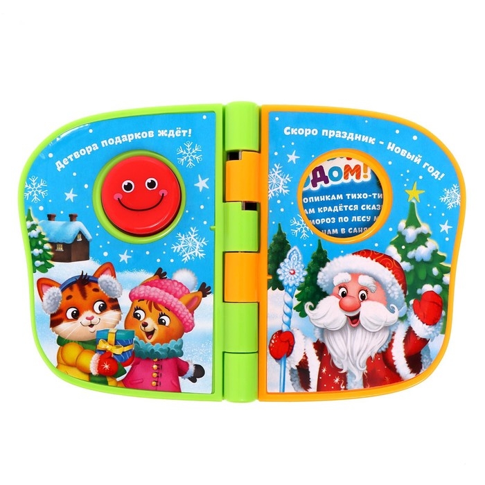 Музыкальная книжка познакомит малыша с весёлыми животными, снеговиком и Дедом Морозом.