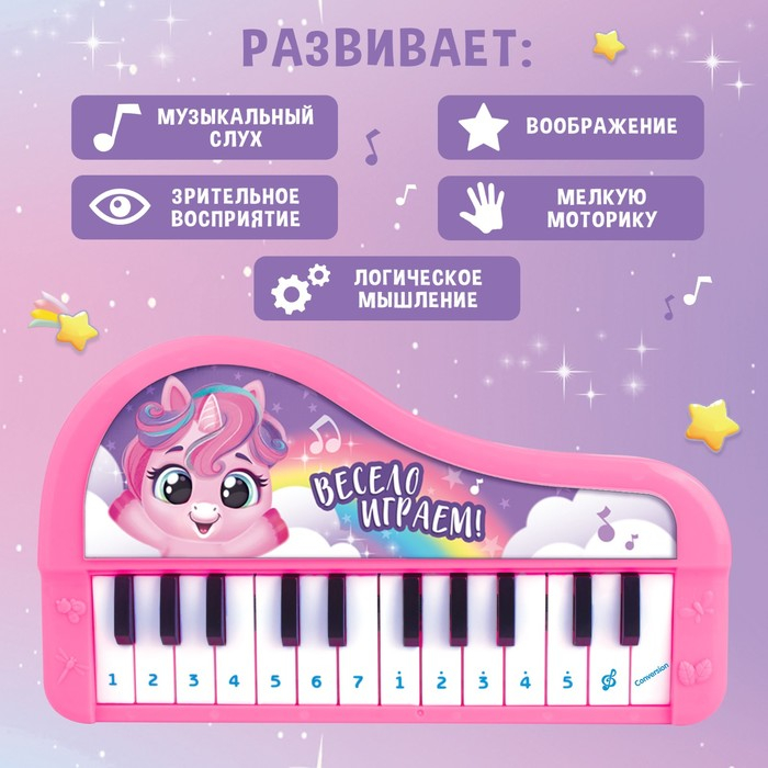 Музыкальное пианино «Чудесные пони», звук, цвет розовый