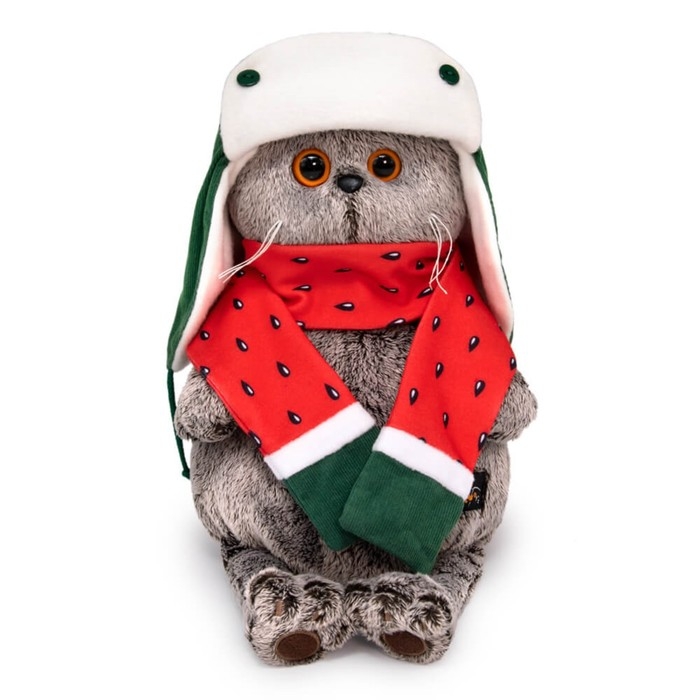 Мягкая игрушка «Басик» — британский вислоухий котик в двусторонней шапке и шарфе. С любимым питомцем малыш весело проведёт время, играя с ним в активные игры. Ребёнок будет заботиться о зверюшке, проявляя к нему любовь и балуя вкусняшками.