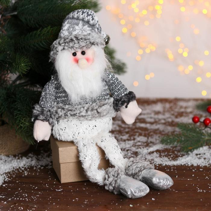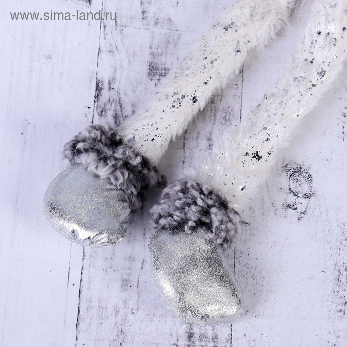 Мягкая игрушка "Дед Мороз с бубенчиком - длинные ножки" 10*40 см серебро