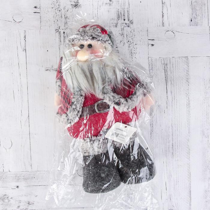 Мягкая игрушка "Дед Мороз в шубке - длинные ножки" стоит, 17х56 см, серо-красный