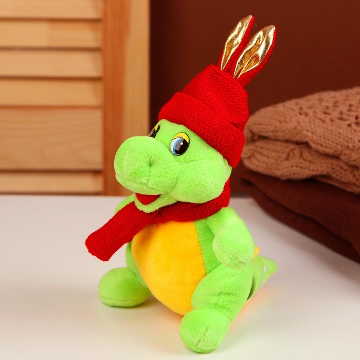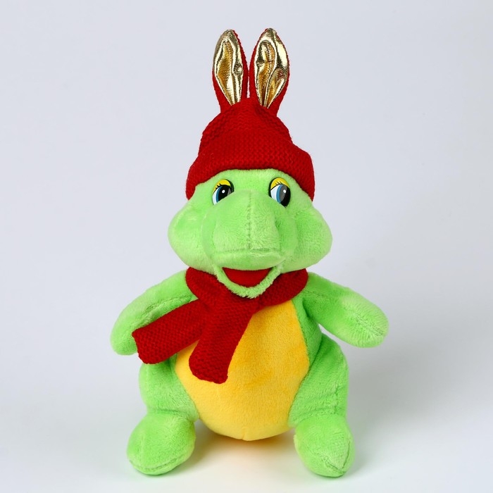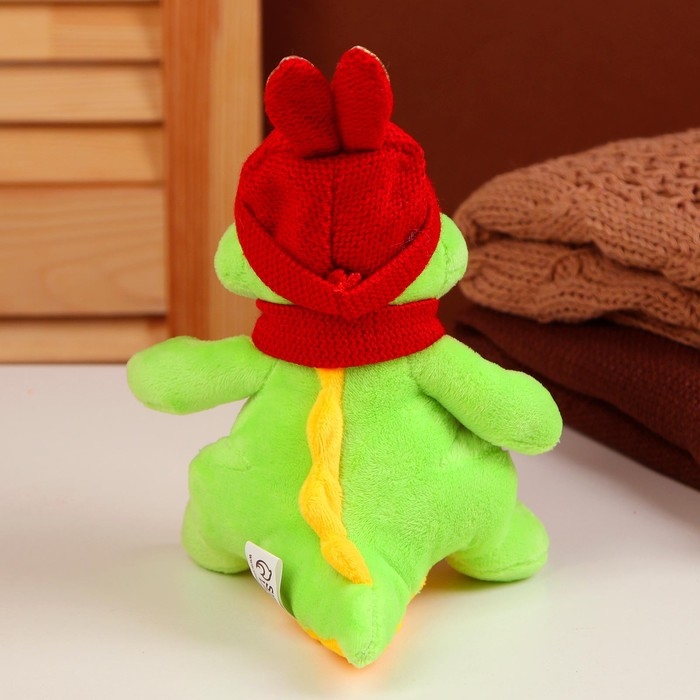 Мягкая игрушка «Дракон», в красной шапке с ушами, 15 см, цвет зелёный