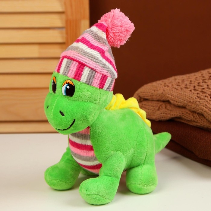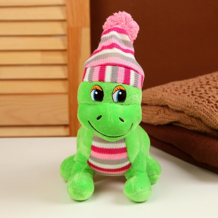Мягкая игрушка «Дракоша», в полосатой шапке, 21 см, цвет зелёный