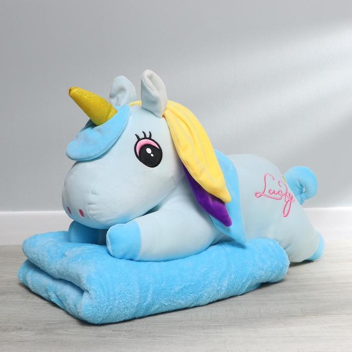 Мягкая игрушка «Единорог», с пледом, цвет голубой