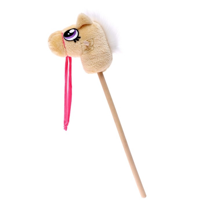 Мягкая игрушка «Конь-скакун», на палке, цвет бежевый