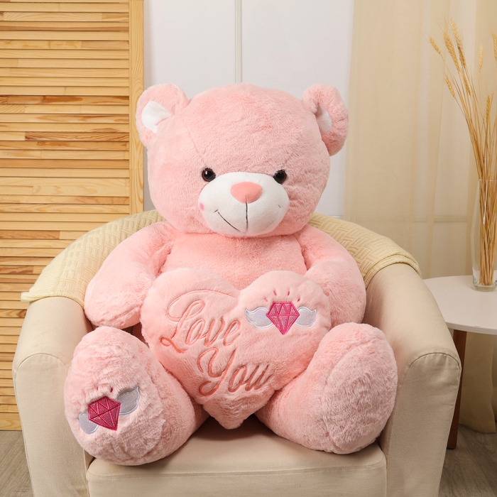 Мягкая игрушка «Медведь», с сердцем, 115 см, цвет розовый