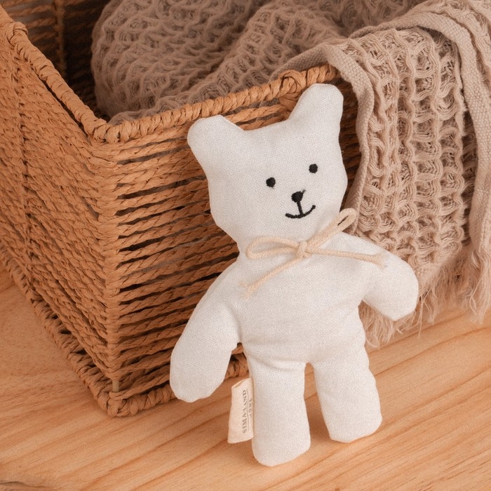 Мягкая игрушка «Мишка», с бантиком, 17 см, цвет белый