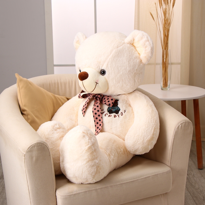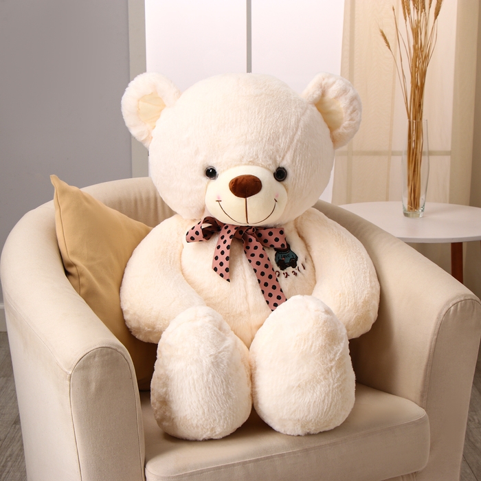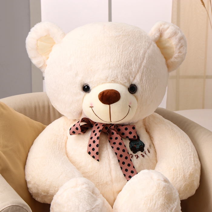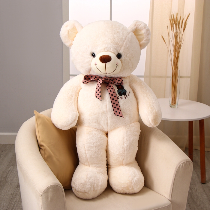Мягкая игрушка «Мишка», с бантом в горошек, 100 см, цвет белый