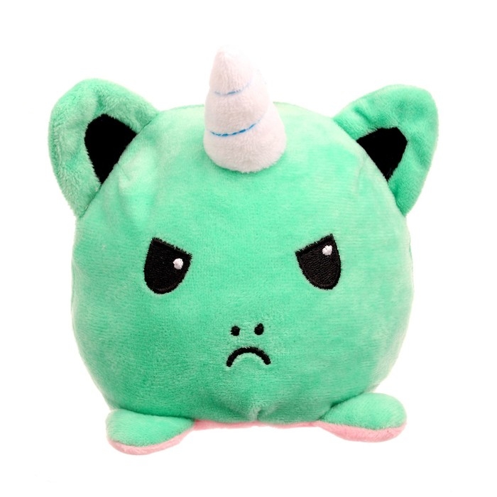 - На одной стороне зверёк улыбается, на другой — сердится. Для смены цвета и эмоции нужно вывернуть игрушку наизнанку.