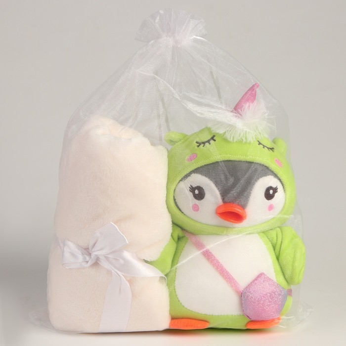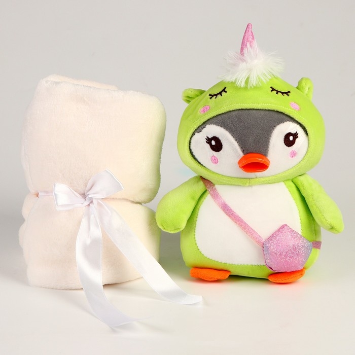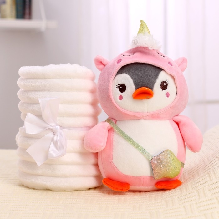 Мягкая игрушка с пледом «Пингвин в костюме единорожки»,МИКС