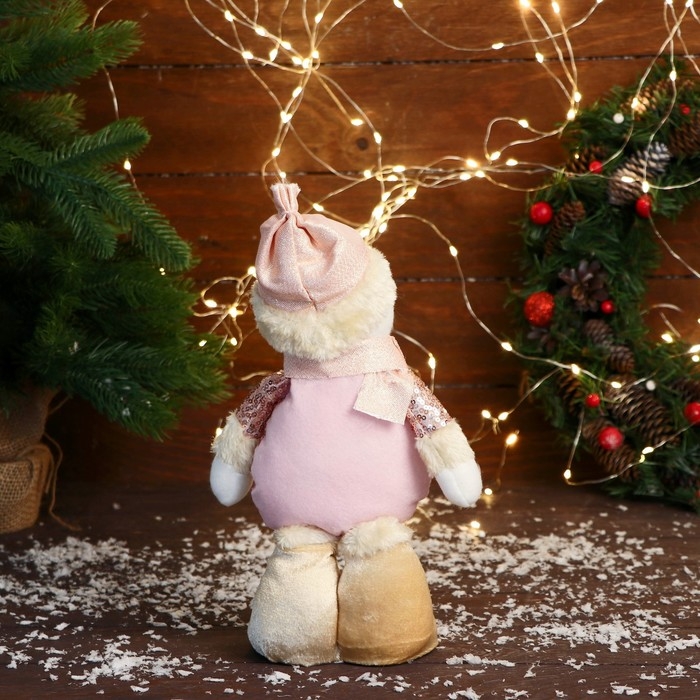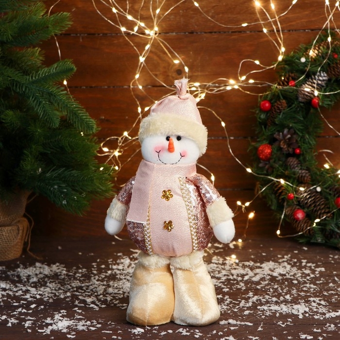 Мягкая игрушка "Снеговик в костюме с цветочками" стоит, 13х27 см, розовый