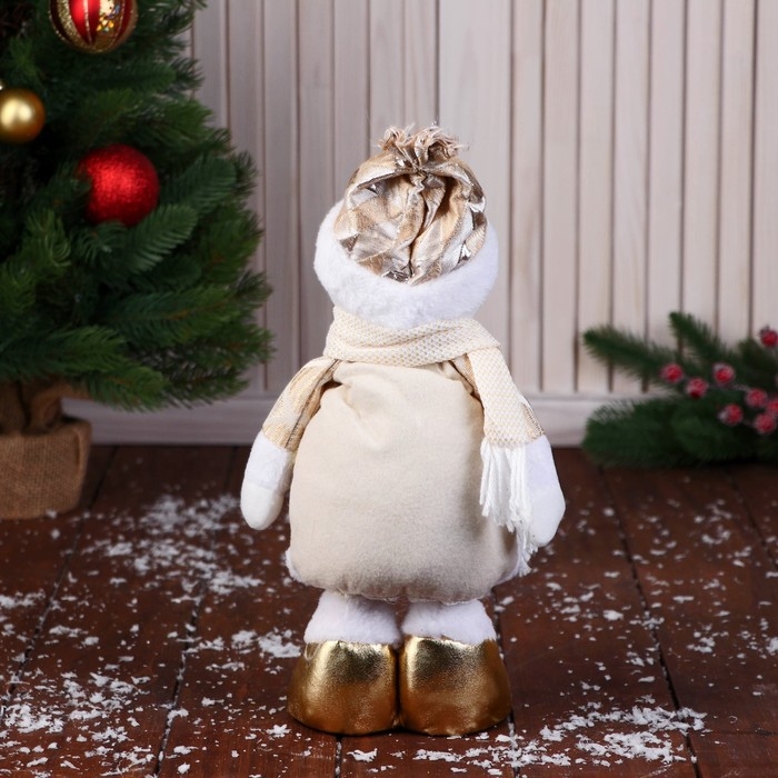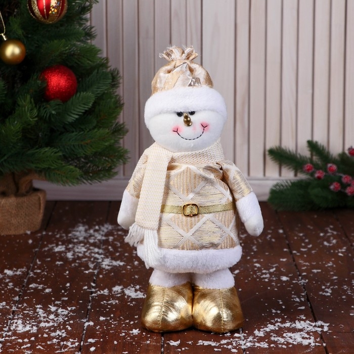 Мягкая игрушка "Снеговик в костюме с ромбиками, длинные ножки" стоит, 14 см, золото